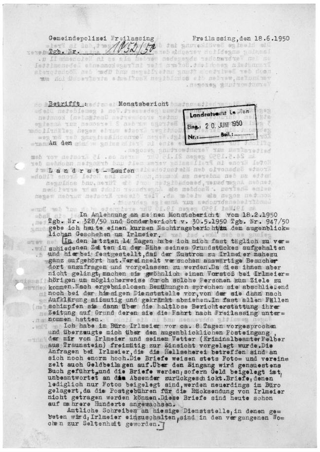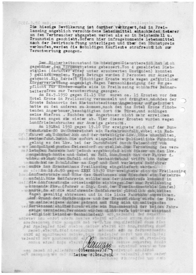 Polizei Freilassing an Landratsamt Laufen 18. Juni 1950