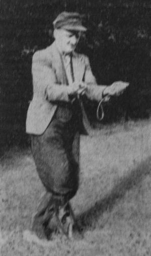 Irlmaier während einer Verhandlungspause im "Traunsteiner Giftmordprozess" in dem er in seiner Eigenschaft als Hellseher aussagte. Die kompletten Prozessakten kann man noch heute im Staatsarchiv München einsehen.